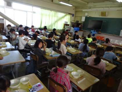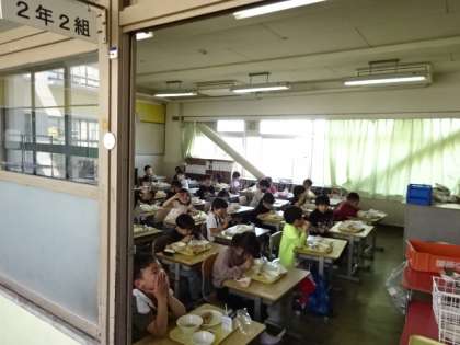 おいしいですか?と聞くと、しずかにうなずいてくれました。給食中は黙食なので、返事といえども声は出しません。きっちり約束を守ってくれて、うれしいです。