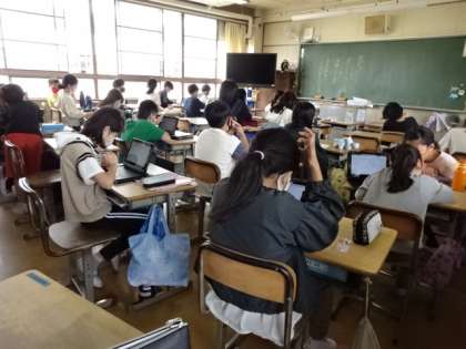 3枚目は5−1です。宿題の「漢字を使った文章」を決められたフォームに入力しているのだそうです。お互いの考えた文章を毎日みんなで共有できるのです。