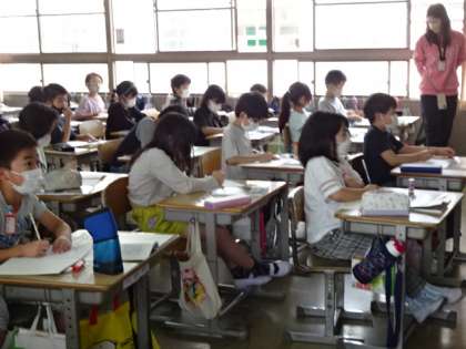 学校や神社など、いろんな建物(施設)を表す記号を考えているようです。