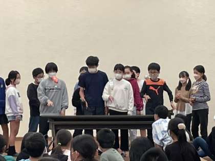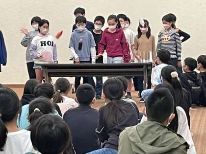 ペットボトルチャレンジです。三分の一ほど水の入ったペットボトルを放り投げて立てます。けっこう上手に立てる人がいて、ボトルが立つたびにみんな「おぉーっ!」とうなっていました。