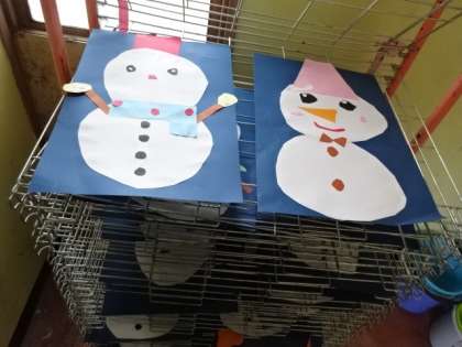 雪だるまの貼り絵も、堂々としただるまがカッコいいです。