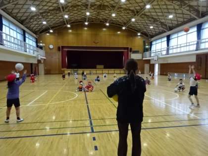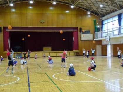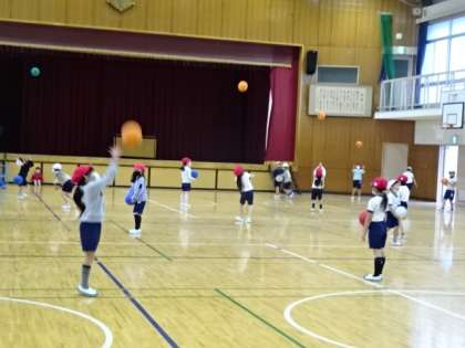 これをやろうとすると、ボールをまっすぐ上に投げないといけません。けっこうむずかしいのです。1年生なのに、上手ですね。