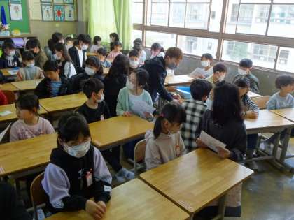 ここからだいたい、1組⇒2組⇒3組の順番に交流の様子を15枚ぐらいの写真で紹介します。ちょっとクラスが混じっているかもしれませんが、ご容赦ください。