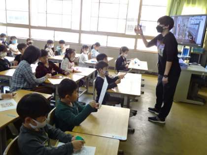 6年生が帰ったあと、もらった折り紙をうれしそうにまじまじと見ている1年生です。確かに、すてきな作品です。6年生のみなさん、ありがとう。1年生のみなさんも、こんな6年生になれたらいいいですね!