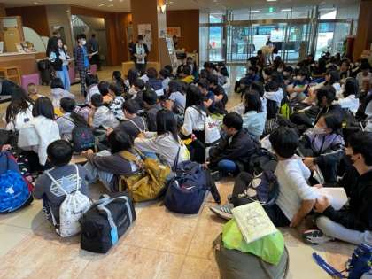 ロビーに全員集合して退館式です。宿舎の人からは「人数が多いから心配していましたが、館内を丁寧に使っていただき、感謝しています」とお言葉をいただきました。