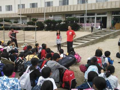 退館式ではみんなで宿の方にお礼を言い、大久野島とお別れをしました。