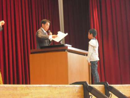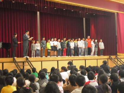 校長先生からは、この夏から秋にかけて活躍した子どもたちの表彰がありました。