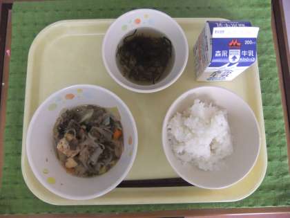 今日の「すきやき煮」は、牛肉、焼き豆腐、糸