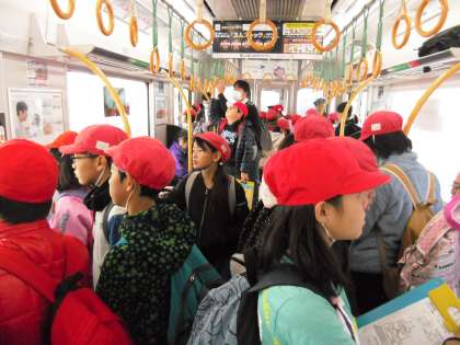 急に肌寒くなりました。5年生は大阪城と読売テレビ局に社会見学へ行きました。いつものとおり、住道駅からJRに乗って行きました。一度に読売テレビ局を見学できる人数が限られているので、紅組と白組の二手に分かれて大阪城とテレビ局を交互に見学することにしました。