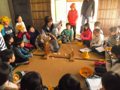 11月11日に3年生が社会科の学習の一環として、鴻池新田会所に見学に行きました。学校で学んできた「大和川のつけかえ」のことを詳しく教えていただいたり、「糸車」の実演を見たり、昔の井戸のつるべを体験したり等、昔の人の暮らしに触れることができました。
