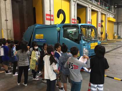 実際に大きなクレーンでゴミを持ち上げている様子やパッカー車で運んでごみを出す様子など、子どもたちはよく見て学んでいました。