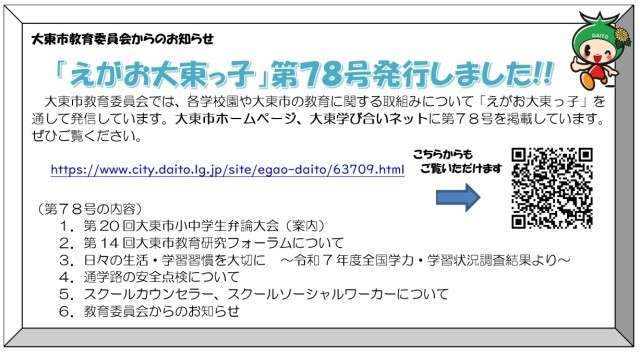 大東市ホームページや大東学び合いネットに掲載されているとのことです。