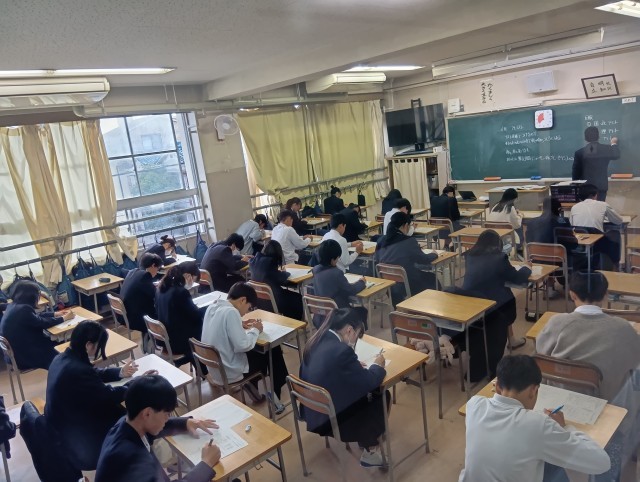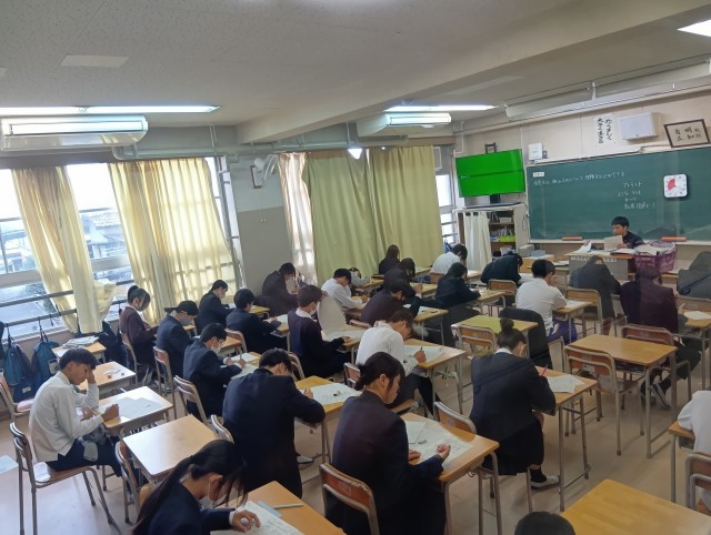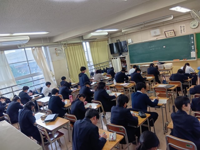 特活の時間の様子です。来週に行われる学期末テスト対策としてプレテストを行いました。