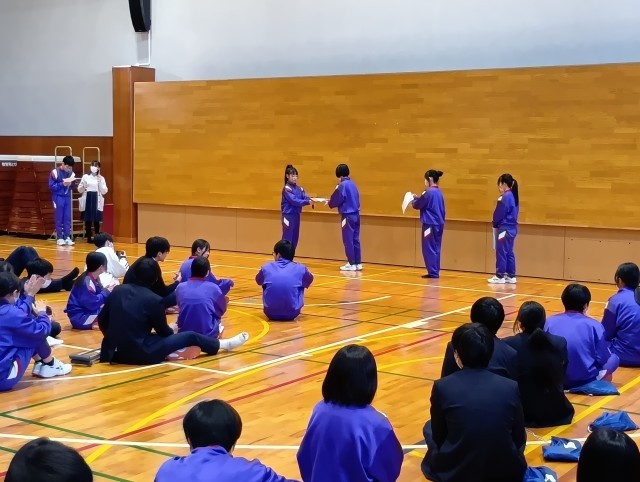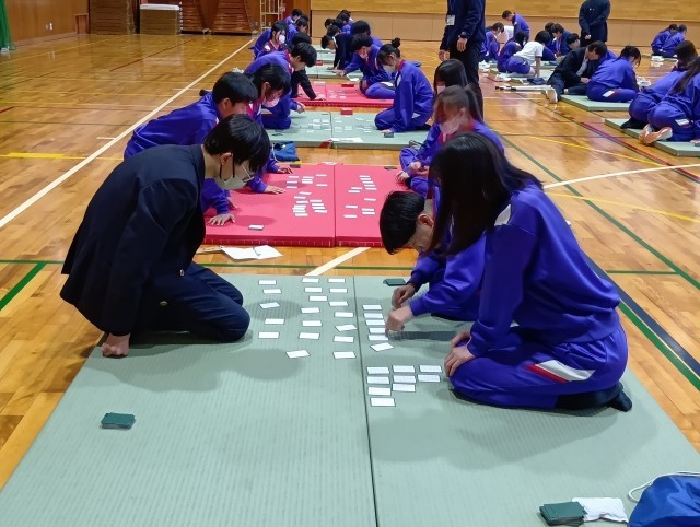毎年恒例の百人一首大会をしました。みんながそれぞれの頑張りの分札を取ることができていました。国語係さんの司会のもと、みんな和気あいあいと取り組んでいる姿が印象的でした。保護者の方もたくさんのご参観ありがとうございました。ひとつずつ終わっていく行事に寂しさを感じますが、これからも残りの学校生活を大事にしていって欲しいと思います。