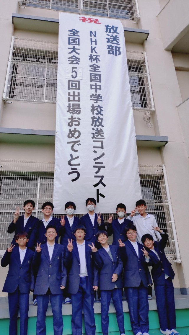 全国大会出場の懸垂幕付け替え作業の一部を、放送部員も自分たちで行いました。立派な懸垂幕をありがとうございます!