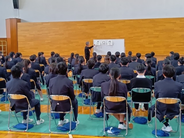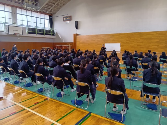 今日は講師の方に来て頂き、多文化共生学習の講演会を行いました。ご自身の生い立ちや今までのご経験から、互いの違いを認め合い、1人の人間として互いに関わっていくことの大切さについてお話して頂きました。残りの中学校生活や、卒業してからの人との関わり方について考える機会になりました。貴重なお話ありがとうございました。