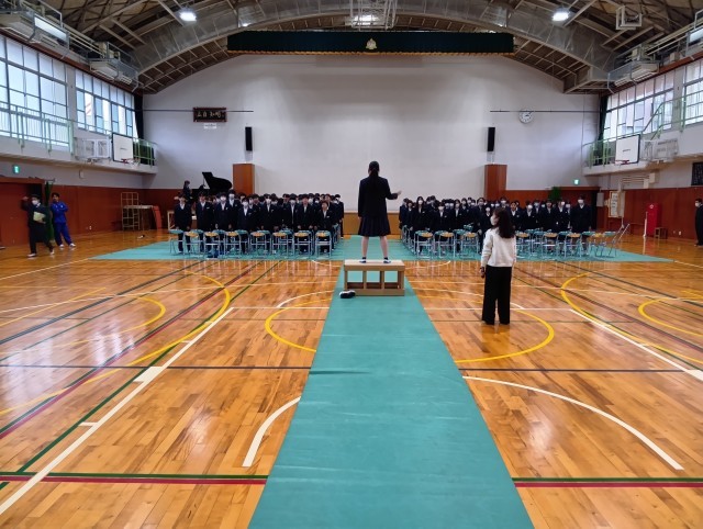 3年生は卒業式練習を頑張っています。証書授与の練習や歌練習など、良い緊張感で進められています。まずは来週の予行に向けて完成度を高めていって欲しいと思います。