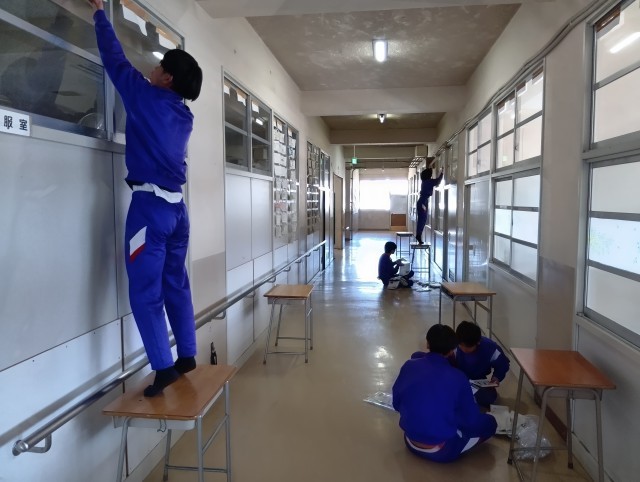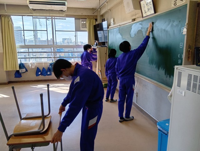 公立一般選抜を受けた人はお疲れ様でした。終わってホッとしているでしょうね。残り2日の学校生活を大切にしましょう。今日は一般選抜がない人たちでフロアの掃除をしました。掲示物をすべて取ると寂しいですね…。掃除してくれた人ありがとう。