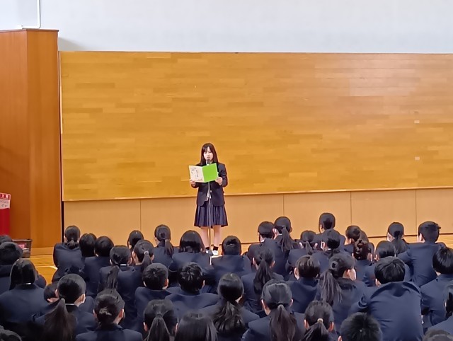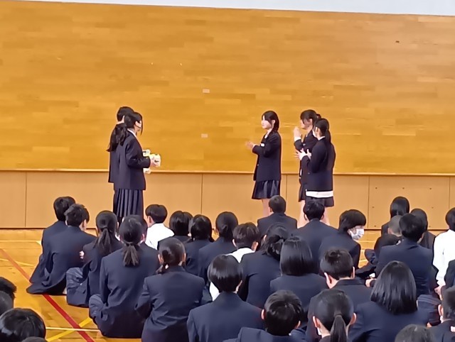 生徒会役員進行のもと、対面式を行いました。代表生徒による歓迎の言葉や誓いの言葉の発表がありました。1年生の教室に生徒会から、素敵なお花がプレゼントされました。