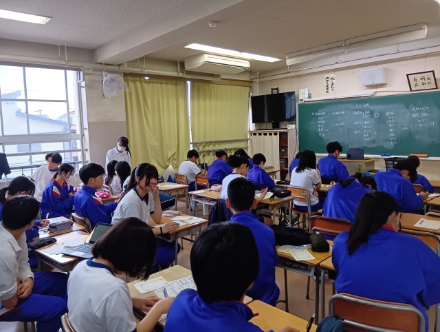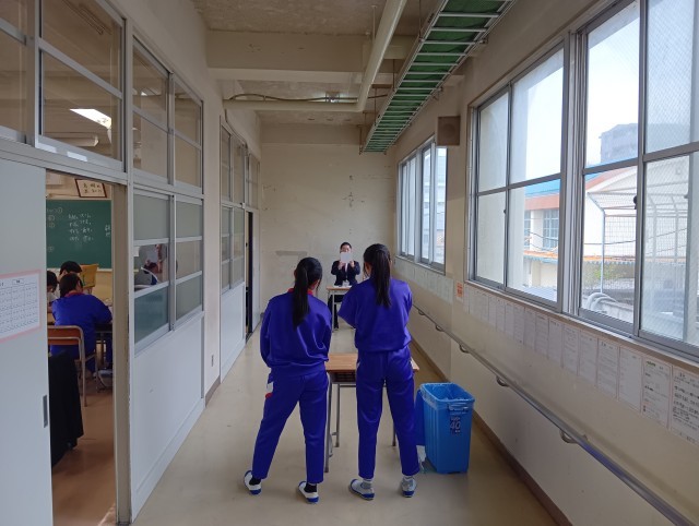 写真は上から、1組、2組、3組です。各クラスで視力検査をしながら、提出物の作成をしていました。作業は先生の指示をよく聞いて、集中して行うことができていました。