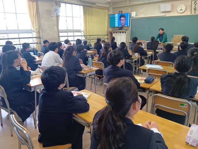 教科担当の先生が「なぜ勉強するのか」について、生徒に熱く語っていました。自分の学生時代の苦労話が子どもたちの心に届いたようです。真剣なまなざしで先生の話を聞いていました。