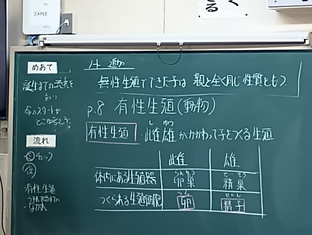 学習内容は「有性生殖(動物)」でした。動画を静かに見ている3年生に感心しました。