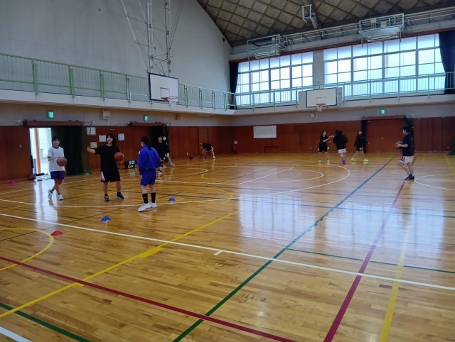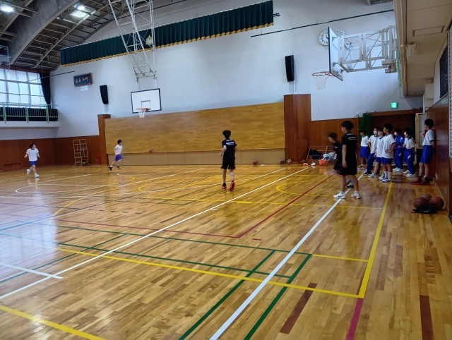写真は上から、男子バスケットボール部、女子バスケットボール部です。部活動も「がんばる時はいつも今」です。