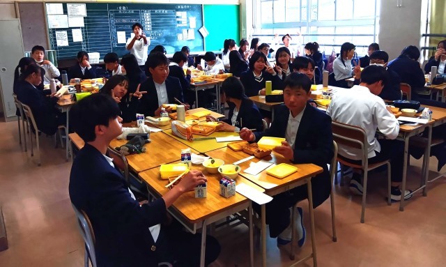 今日もおいしく給食をいただきました。3年生はとても元気です。写真撮影にも快く応じてくれる45期生です。写真は上から、1組、2組、3組です。