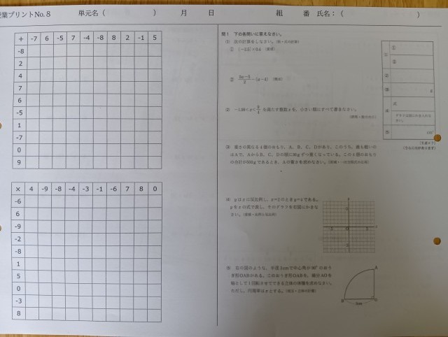 生徒は100マス計算のあと、復習プリントを解いていました。連休明けに行われる第一回実力テストに向けて、がんばっている様子は伺えました。