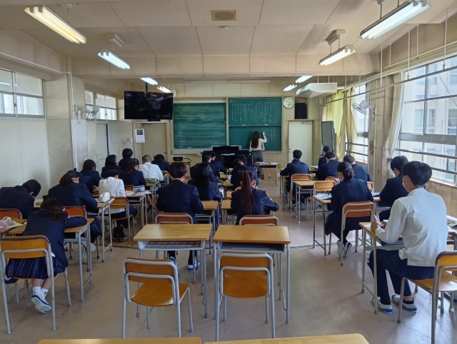 本当に静かな教室に驚きました。教科担当の先生が黒板に書いている答えを生徒は一生懸命に写していました。さすが最上級生の授業だと感心しました。