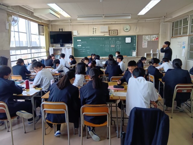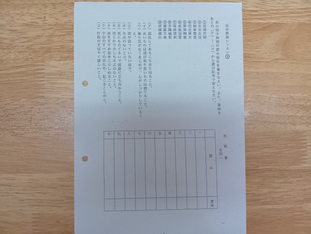 学習内容は「四字熟語」でした。学び合いが行われ、分からない問題を教え合う姿が教室にありました。