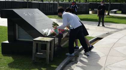 修学旅行 激戦地:摩文仁の丘にて平和の集い!昨夜は豪雨、クラス写真は撮れるのか?その1