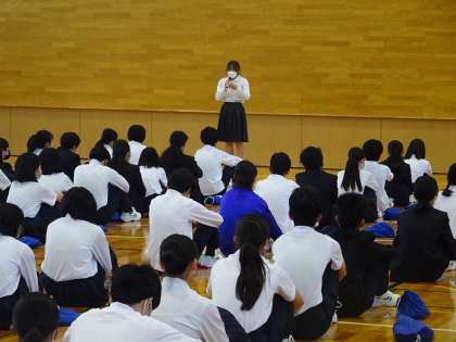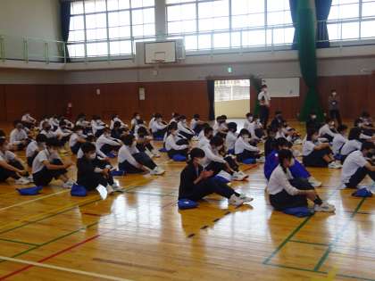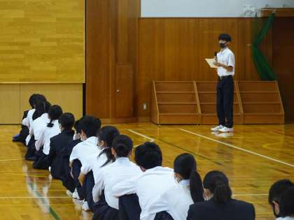 今日は久しぶりの学年集会でした。内容は実行委員長さんから宿泊学習に向けての学年目標、学級委員さんから各クラス目標の発表、保健係からのお願い、先生からのお話でした。