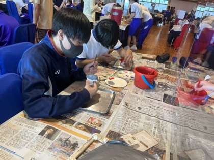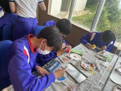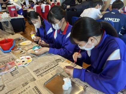修学旅行 シーサー色塗り 4組