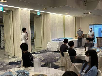 入館式で、ホテルの方へあいさつを行いました。