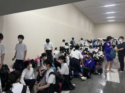 各クラスの代表がみんなの大きな荷物をレーンから下ろしてくれました!