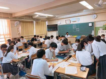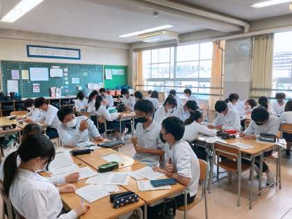 楽しかった修学旅行を終えて、またいつもの日常に帰ってきた3年生。修学旅行の思い出を忘れないために、そして周りのみんなに知ってもらうために、壁新聞づくりを開始しました。最初は文章を書くのに戸惑っていた人たちも、班のみんなと案を出し合いながら、自分の思い出を書き連ねていましたね。皆さんの思いの詰まった壁新聞、とても楽しみです。
