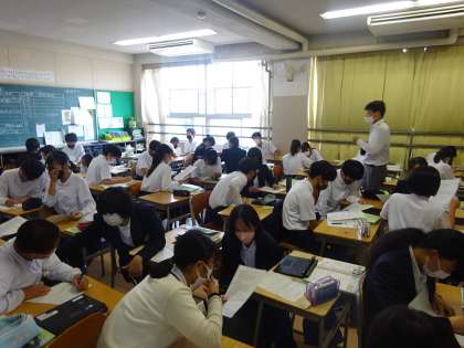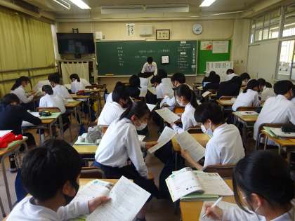 ペア学習を基本に、たくさんの仲間と交流をしました。「夏休みはどこに行くのがいいか」英語でやり取りをしました。写真は2組の様子です。3組のみなさんは来週になります!