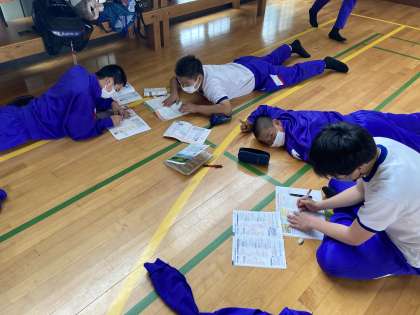 体育館ではレク?のようなことをしていたり、社会のワークをしていたり、パソコンの勉強をしていたり、さまざまな過ごし方をしていました。