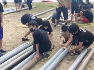 どの班もみんな楽しそうにパイプを繋いでいます。