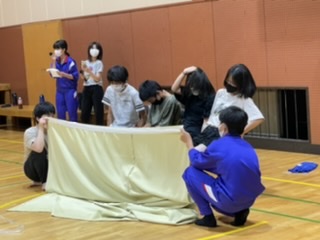 誰が本当に足ツボを受けているかみんなで予想しています。