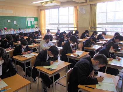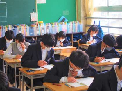 1組・2組のテストの様子です。2年生になって初めてのテストです。集中力を高め一生懸命に問題と向き合っています。