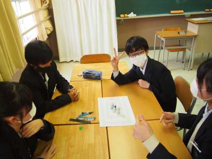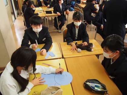 3組は画用紙を使って掲示物を作成、4組はさいころトークで盛り上がりました。