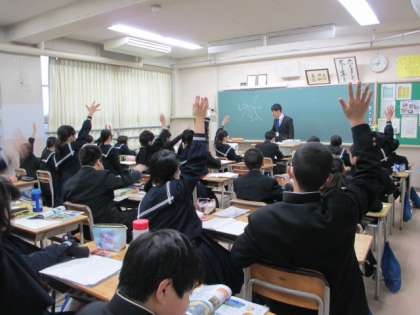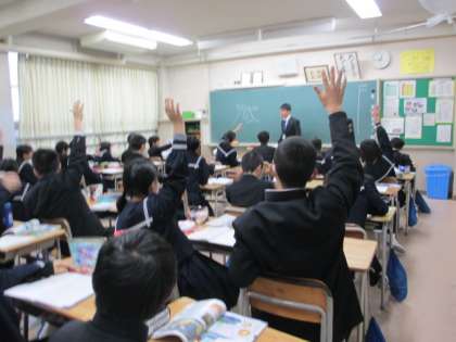 教育委員会から大学の先生と指導主事の先生に来ていただき、1年2組の理科の授業をみていただきました。