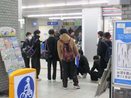 鴻池新田駅でも、3年の先生方が早朝より駅を通過する生徒たちを待って、持ち物を確認して送り出していました。受験する生徒たちの健闘を祈っています。