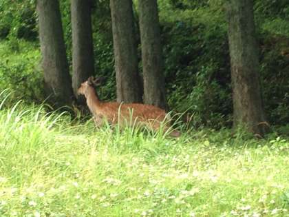 大東では見ることができない大自然です。 途中、野生の鹿と出会いました。