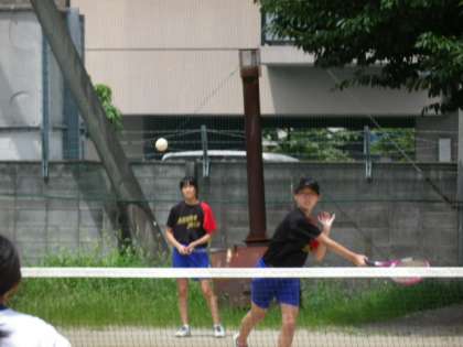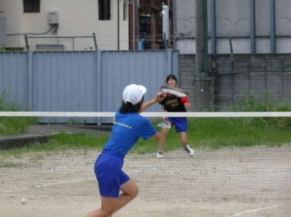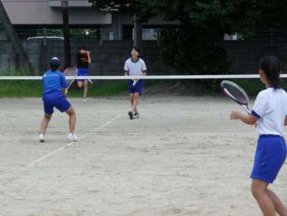 テニス部も炎天下のコートで 真面目に練習に励んでいました。