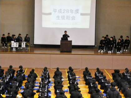 本日はその報告と総括を 「生徒総会」 で発表・報告しました。