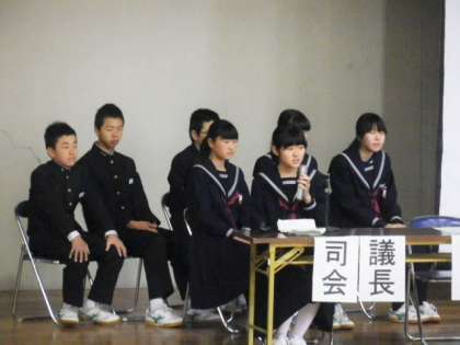 各委員会がパワーポイントを使ってわかりやすく一生懸命説明し、全校生徒がそれを静かに注目していた様子は、大変素晴らしかったと思います。