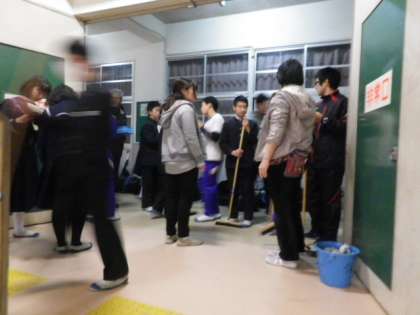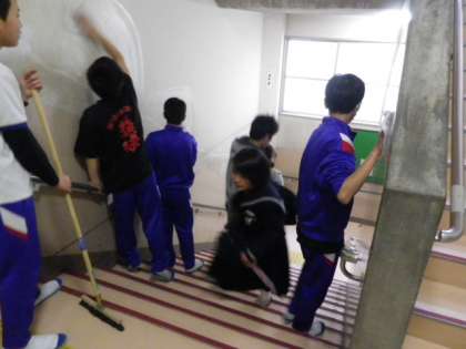 明日の私学入試を控えた3年生が下校した後、1・2年生の有志による校内外のボランティア美化活動 「Clean in School」 が実施されました。